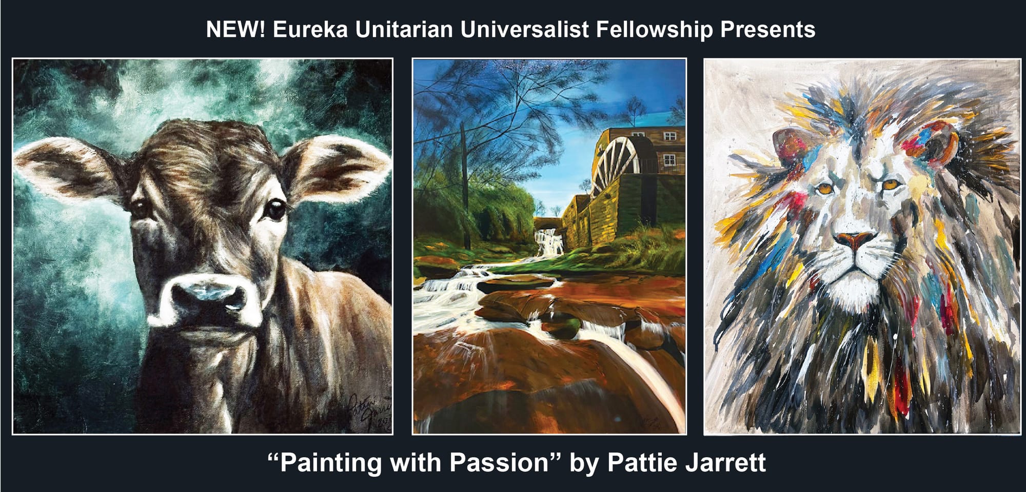 Painting with Passion - Art by Pattie Jarrett - NEW Art Wall Exhibit & Sale at Eureka Unitarian Universalist Fellowship. January 9 - March 29, 2026. Saturdays 10am-2pm | Sundays 2-5pm. (except January 11, February 1 and March 1) Drop in and say hello!